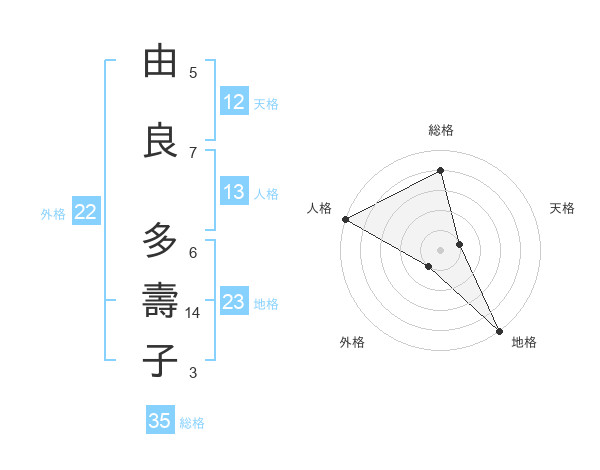 由良 多壽子さんを姓名の画数から五運を鑑定