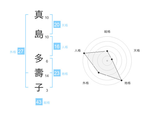 真島 多壽子さんを姓名の画数から五運を鑑定