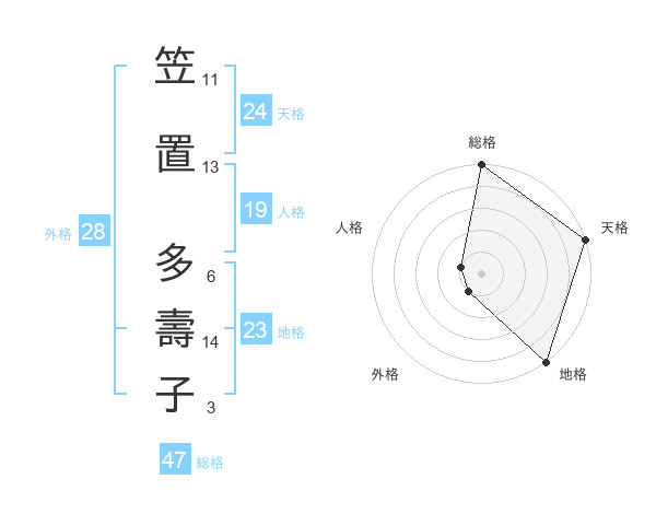 笠置 多壽子さんの総格は47画の5点!