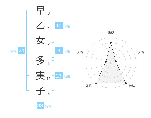 早乙女 多実子さんを姓名の画数から五運を鑑定