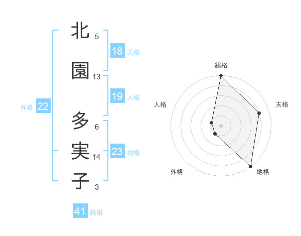 北園 多実子さんの外格は22画の1点!