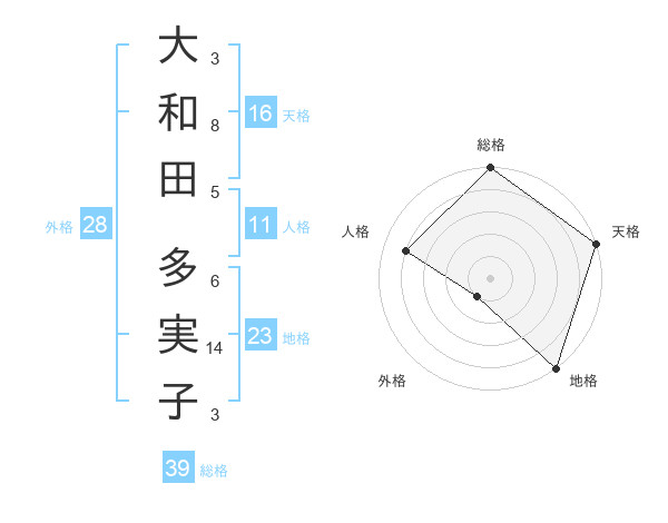 大和田 多実子さんを姓名の画数から五運を鑑定