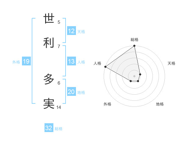 世利 多実さんの総格は32画の5点!