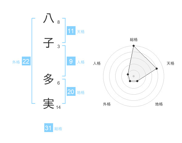八子 多実さんの総格は31画の5点!