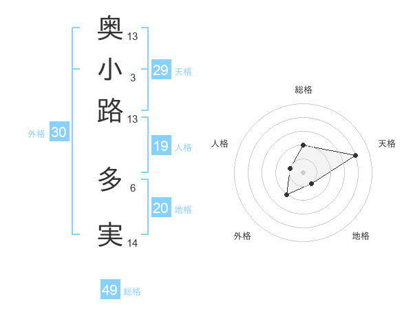 奥小路 多実さんの総格は49画の2点!