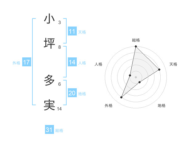 小坪 多実さんを姓名の画数から五運を鑑定