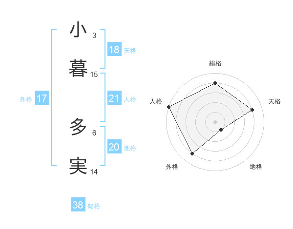 小暮 多実さんの総格は38画の4点!