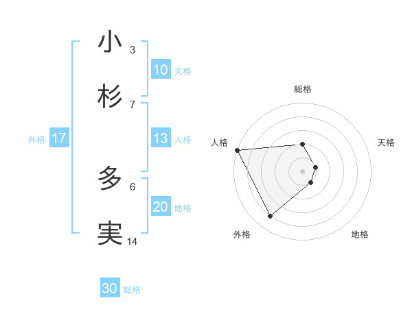 小杉 多実さんの総格は30画の2点!