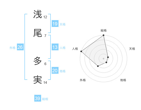 浅尾 多実さんの総格は39画の5点!