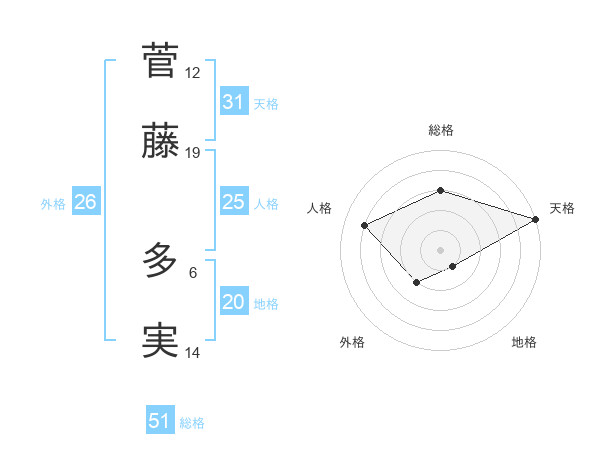 菅藤 多実さんを姓名の画数から五運を鑑定
