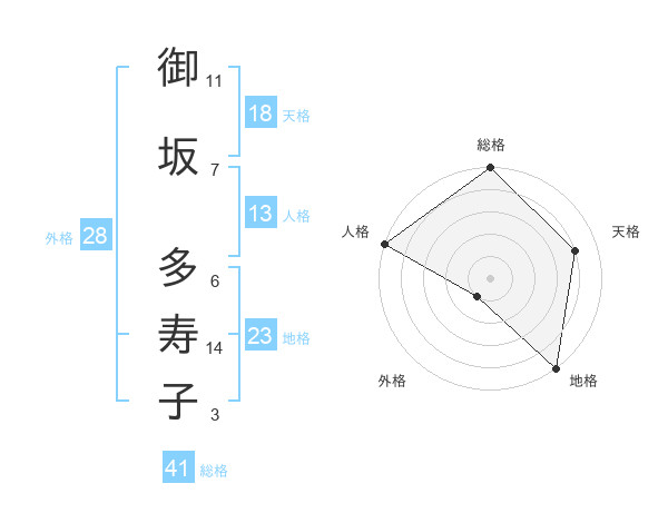 御坂 多寿子さんを姓名の画数から五運を鑑定