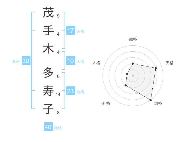 茂手木 多寿子さんを姓名の画数から五運を鑑定