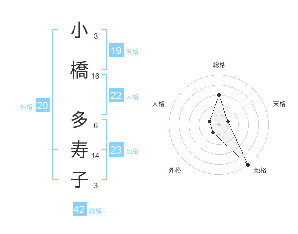 小橋 多寿子さんを姓名の画数から五運を鑑定