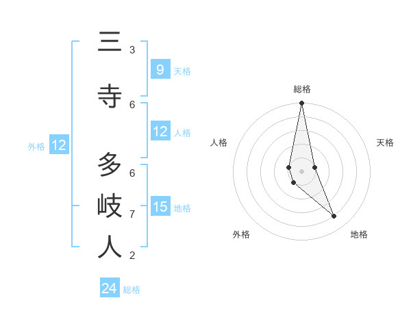 三寺 多岐人さんを姓名の画数から五運を鑑定