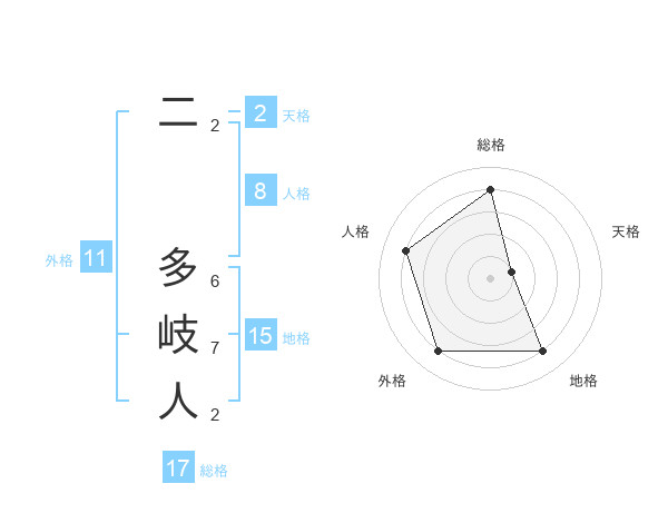 二 多岐人さんの総格は17画の4点!