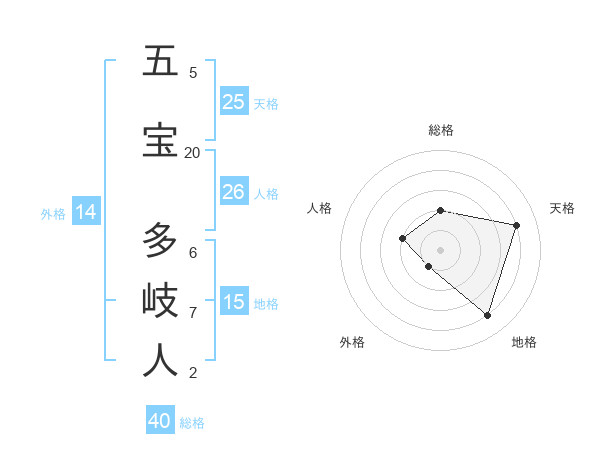 五宝 多岐人さんを姓名の画数から五運を鑑定