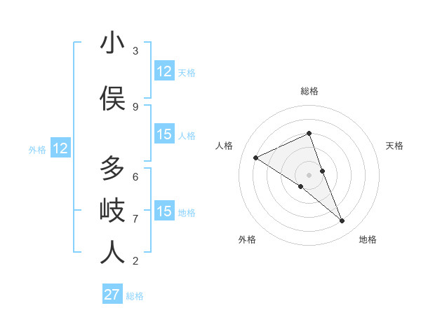 小俣 多岐人さんの天格は12画の1点!