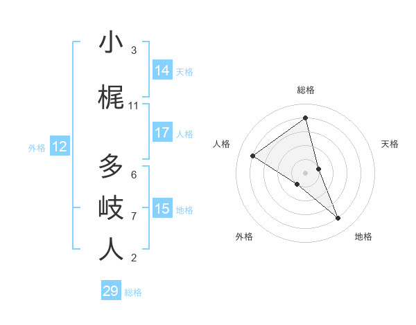小梶 多岐人さんを姓名の画数から五運を鑑定
