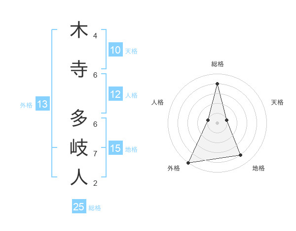 木寺 多岐人さんを姓名の画数から五運を鑑定