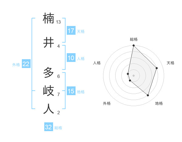楠井 多岐人さんの総格は32画の5点!