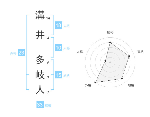 溝井 多岐人さんの総格は33画の4点!