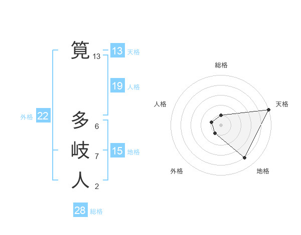 筧 多岐人さんの天格は13画の5点!