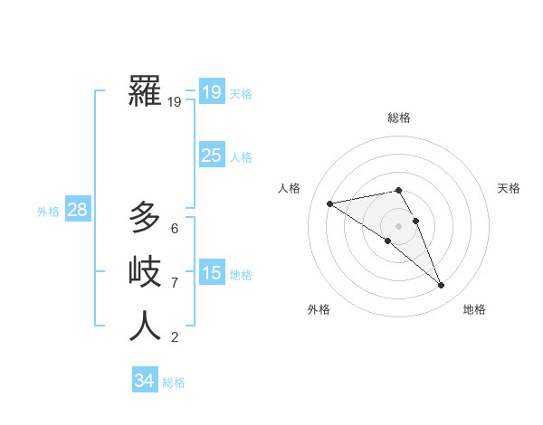 羅 多岐人さんを姓名の画数から五運を鑑定