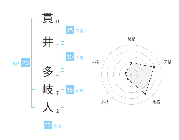 貫井 多岐人さんの地格は15画の4点!