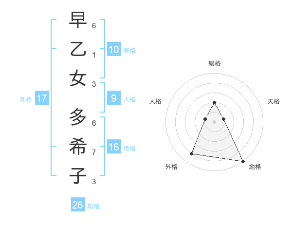 早乙女 多希子さんの総格は26画の2点!