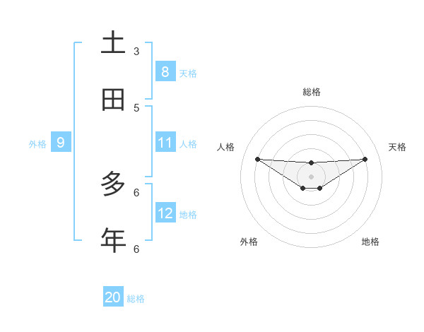 土田 多年さんの総格は20画の1点