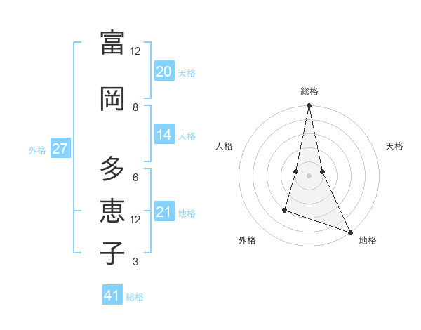 富岡 多恵子さんを姓名の画数から五運を鑑定