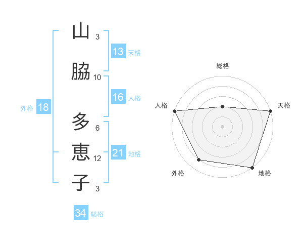 山脇 多恵子さんを姓名の画数から五運を鑑定