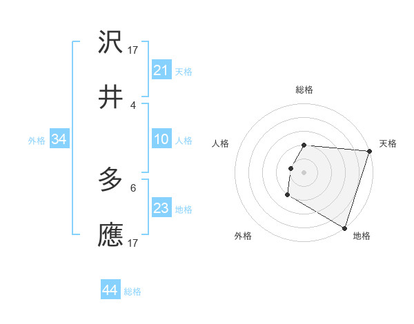 沢井 多應さんの天格は21画の5点!