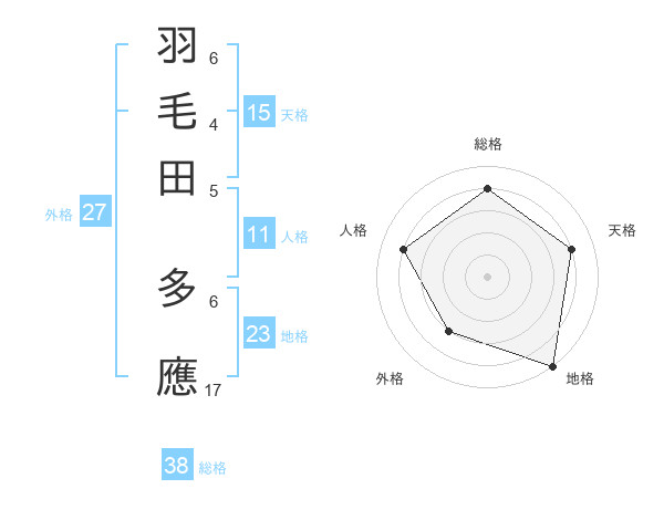 羽毛田 多應さんを姓名の画数から五運を鑑定