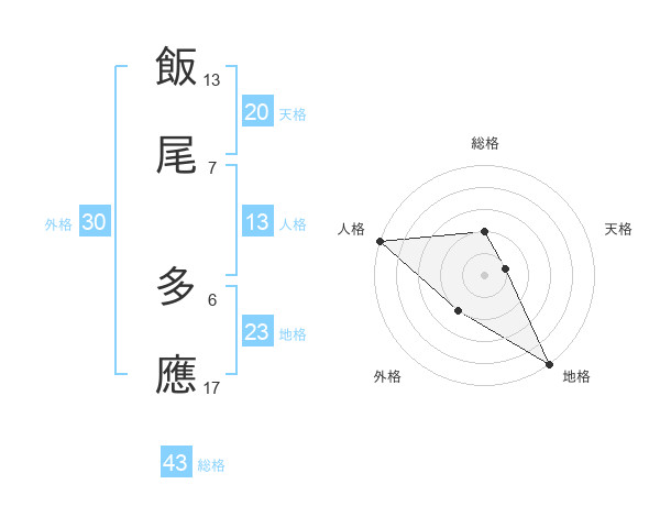 飯尾 多應さんを姓名の画数から五運を鑑定