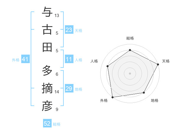 与古田 多摘彦さんを姓名の画数から五運を鑑定