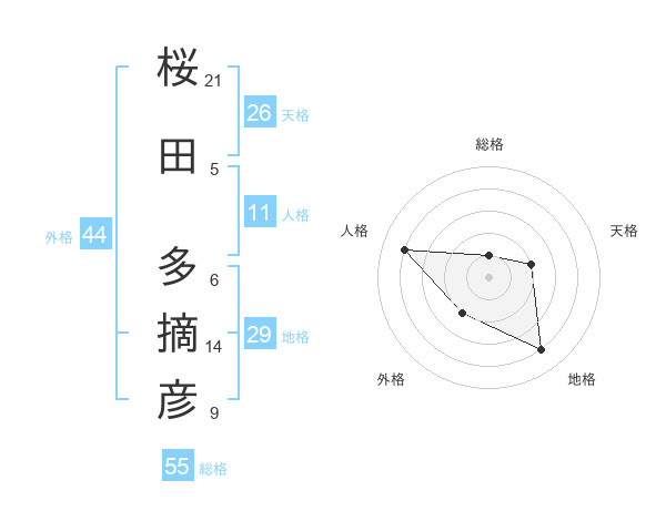 桜田 多摘彦さんを姓名の画数から五運を鑑定