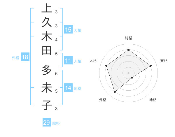 上久木田 多未子さんを姓名の画数から五運を鑑定