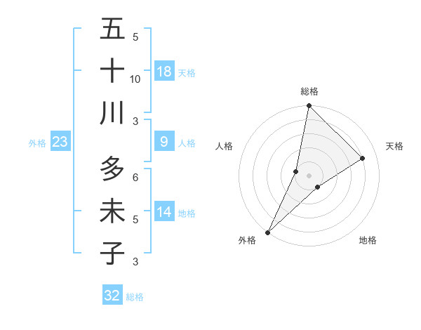 五十川 多未子さんの外格は23画の5点!