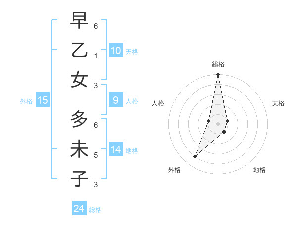 早乙女 多未子さんを姓名の画数から五運を鑑定