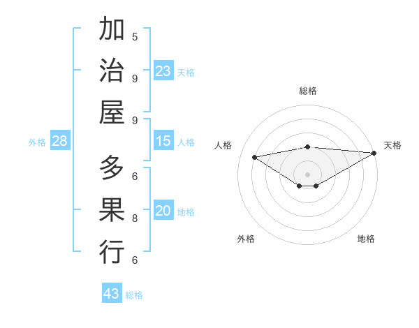 加治屋 多果行さんの天格は23画の5点