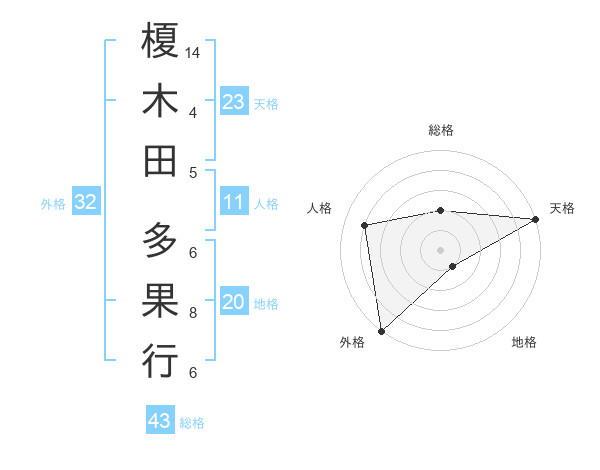 榎木田 多果行さんの天格は23画の5点!