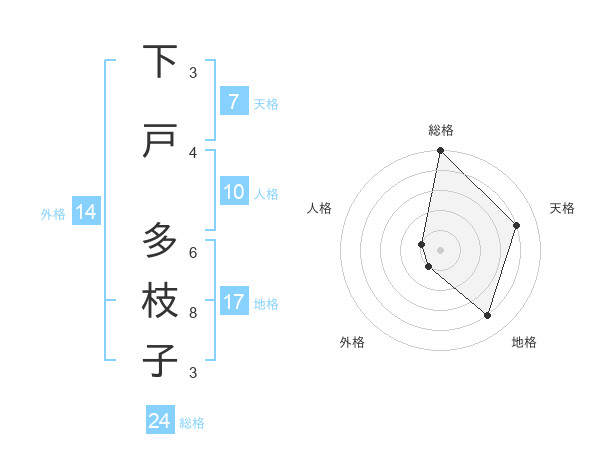 下戸 多枝子さんを姓名の画数から五運を鑑定