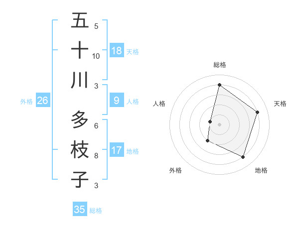 五十川 多枝子さんを姓名の画数から五運を鑑定