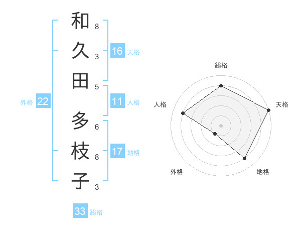 和久田 多枝子さんを姓名の画数から五運を鑑定