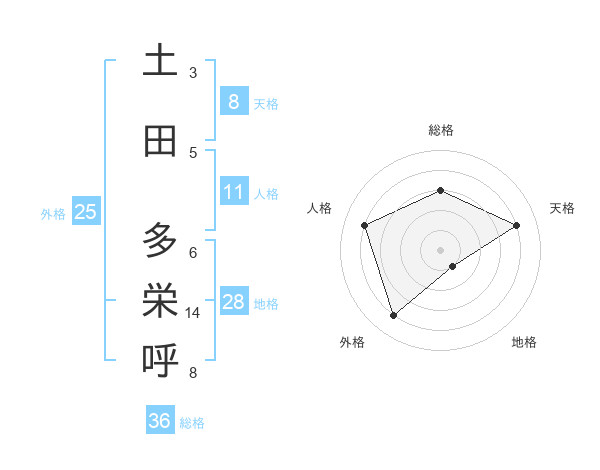 土田 多栄呼さんを姓名の画数から五運を鑑定