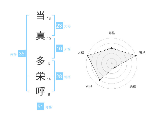 当真 多栄呼さんを姓名の画数から五運を鑑定