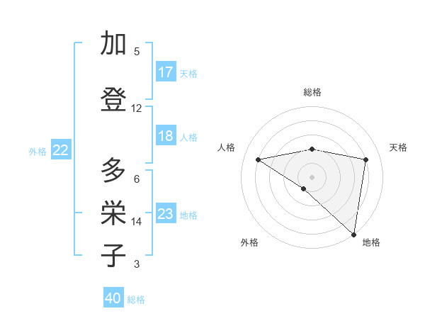 加登 多栄子さんを姓名の画数から五運を鑑定