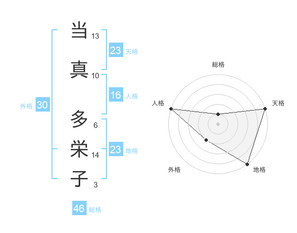 当真 多栄子さんを姓名の画数から五運を鑑定