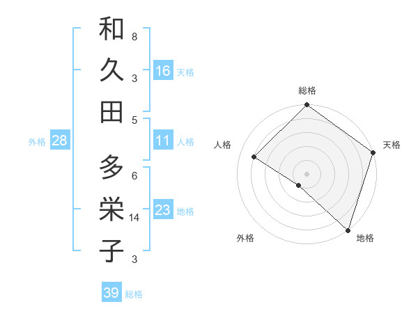 和久田 多栄子さんを姓名の画数から五運を鑑定
